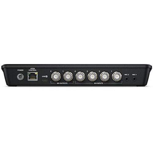 Diseñado para la transmisión en directo multicámara a internet o aplicaciones de radiodifusión, el compacto ATEM SDI de Blackmagic Design ofrece un mezclador de producción en directo de cuatro entradas con panel de control integrado para consolas de videojuegos, transmisiones por ordenador corporativas o cámaras HD. Las cuatro entradas SDI se encuentran en la parte trasera del chasis y admiten vídeo de hasta 1080p60. Dos salidas 3G-SDI son útiles para un proyector o un monitor externo, una salida USB-C para transmitir vídeo de hasta 1080p60 a un ordenador y un puerto Ethernet RJ45 10/100 para la gestión del sistema, el control remoto y las actualizaciones.
