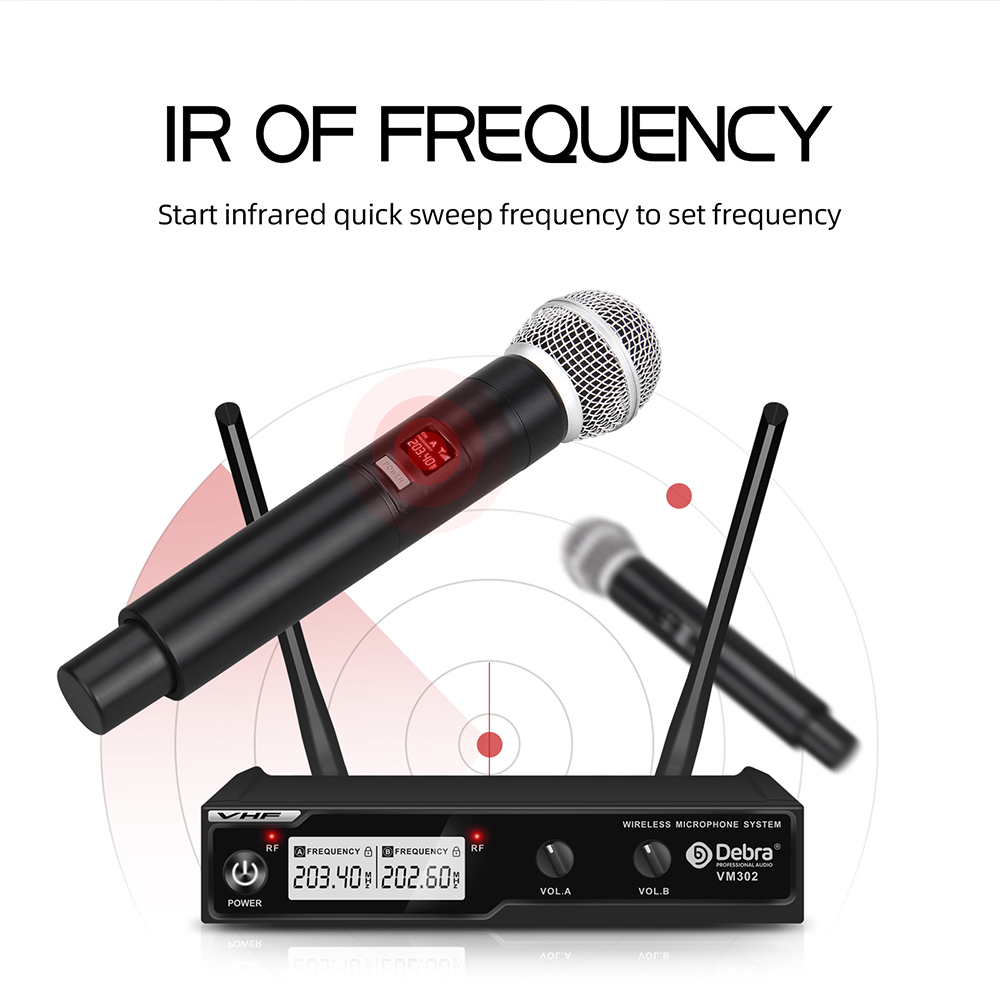 El micrófono inalámbrico VM302 es un sistema de karaoke que utiliza transmisión de señal VHF. Se centra en la portabilidad y la rentabilidad. Es excelente para el hogar y el uso diario. Utiliza tecnología de chip PHD para el procesamiento de sonido, lo que mejora la claridad del micrófono. Gracias a su diseño de circuitos razonable, se garantiza la estabilidad de la transmisión de la señal. El VM302 es una excelente opción para el hogar, banquetes, karaoke, conferencias y grabaciones de canto.