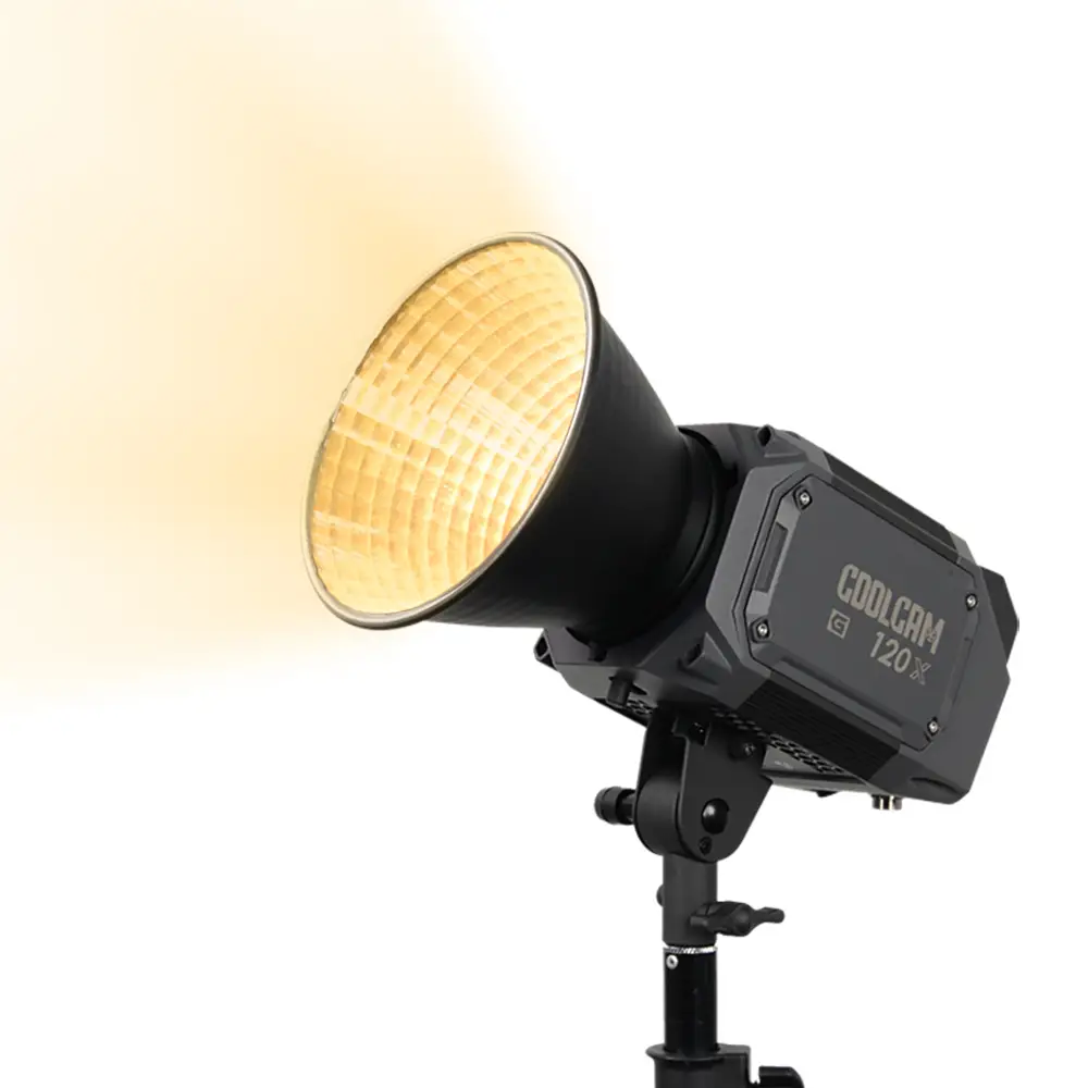 La COOLCAM 120X (G) cuenta con una temperatura de color bicolor ajustable de 2700K - 6500K y se puede atenuar de 0 a 100% de potencia sin parpadear. También tiene una clasificación CRI y TLCI de ≥95, lo que garantiza una reproducción precisa y fiel del color. Además, incluye detección de temperatura NTC incorporada, que controla automáticamente el ventilador y evita el sobrecalentamiento, lo que promueve una vida útil más larga del producto.